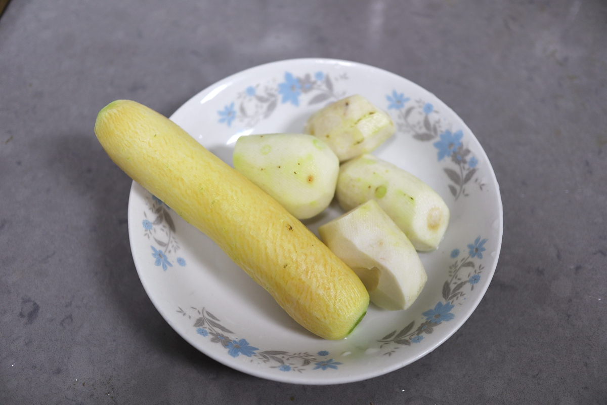 【材料】酱鸭半只,小芋头4个,胡萝卜1根,香葱1棵