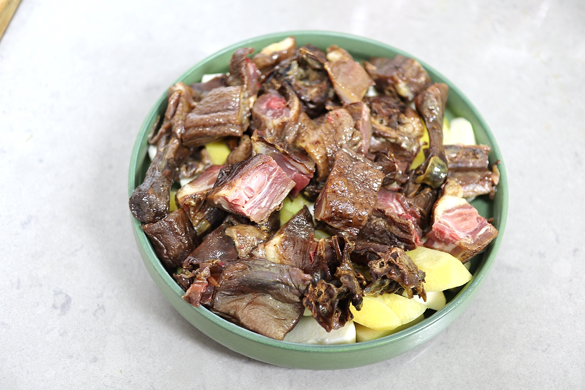 即使没有绿叶菜,这盘蒸酱鸭也让人大快朵颐。其中的芋头和胡萝卜富含植物纤维和矿物质,因富含淀粉还能代替一部分主食,还有健脾明目的效果。两只鸭子我做了四道不同的美味,长话短说,赶紧先端上一盘菜。