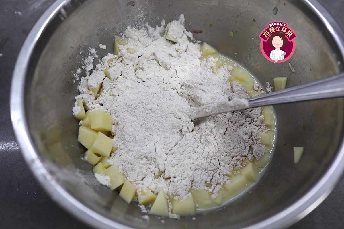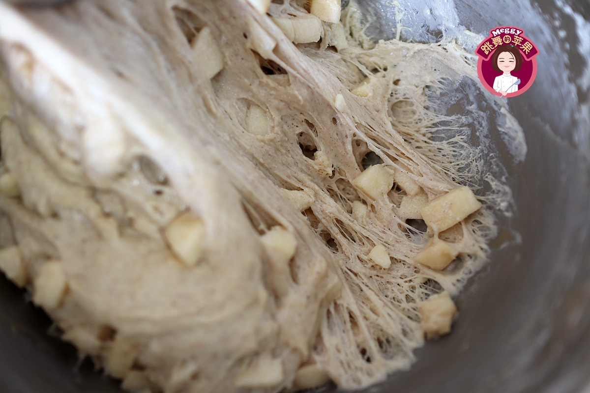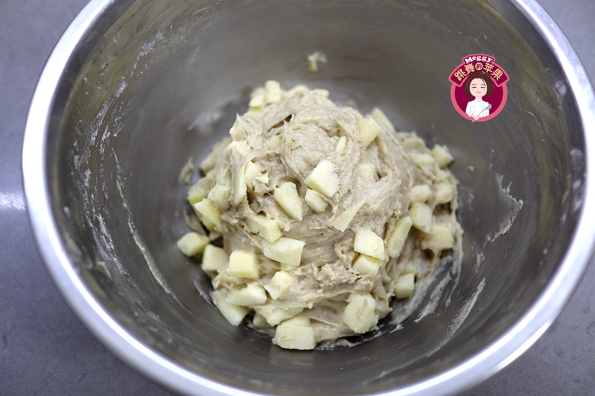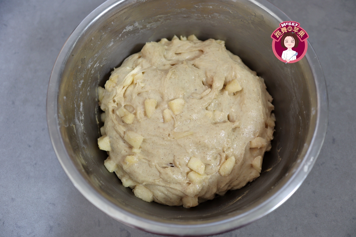2. 苹果丁可以换成香蕉,但香蕉易变成糊状,且水分比苹果的多一些,所以用量可以减半来尝试;肉桂粉和苹果是绝配,所以在放香蕉泥的时候可以不放肉桂粉。