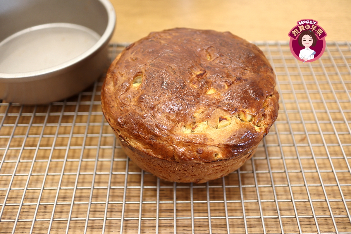 16. 出炉后端着模具轻震几下,面包出脱模,凉至温热时入袋保存或者切块食用;浓浓的肉桂味和苹果味相得益彰,面包内部非常柔软有弹性。