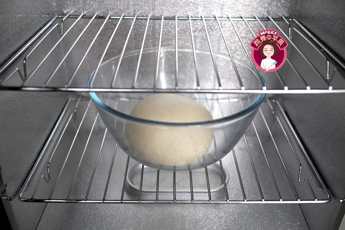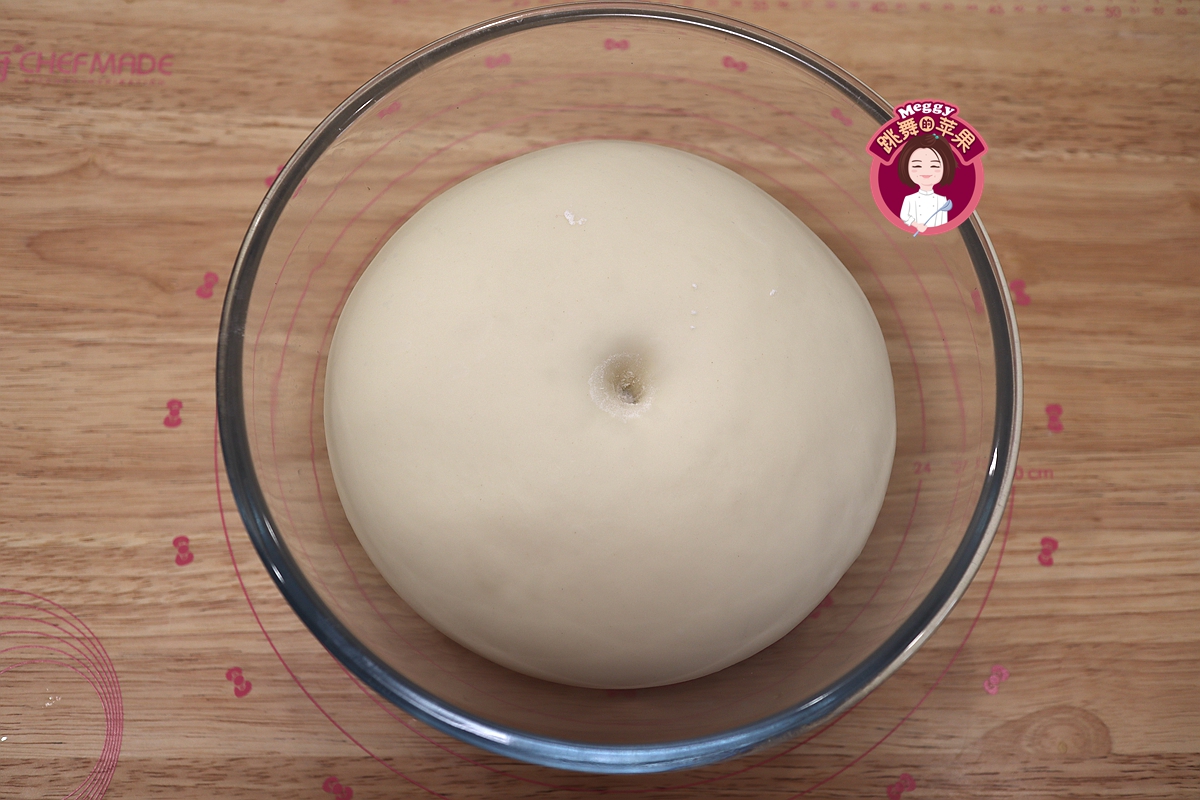 9. 面团2倍大,手指蘸面粉在面团顶部戳个洞,不塌陷不回缩,发酵成功;