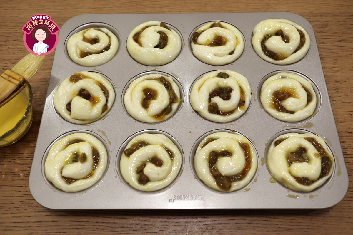 3. 没有这种12连模,可以将面包卷直接平放在不粘烤盘上,每个卷之间留出足够的膨胀空间;