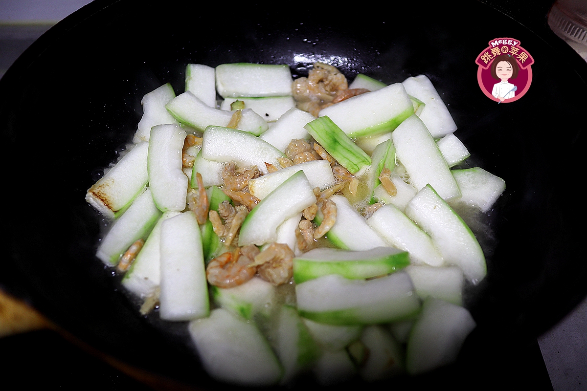 北方人炒菜喜放酱油,颜色红润才觉得有味道,但这道菜可千万不能放酱油,放酱油不但失去了冬瓜红绿相间的美貌,更让冬瓜有了酸味,还看不出海米的金黄外观。