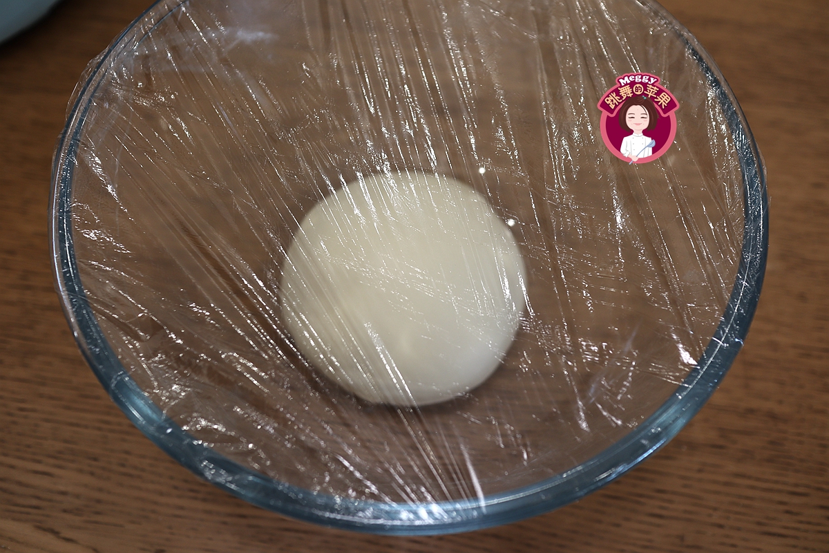 5. 面团收圆放在深盆里,蒙保鲜膜,放在温暖湿润处进行基础发酵;