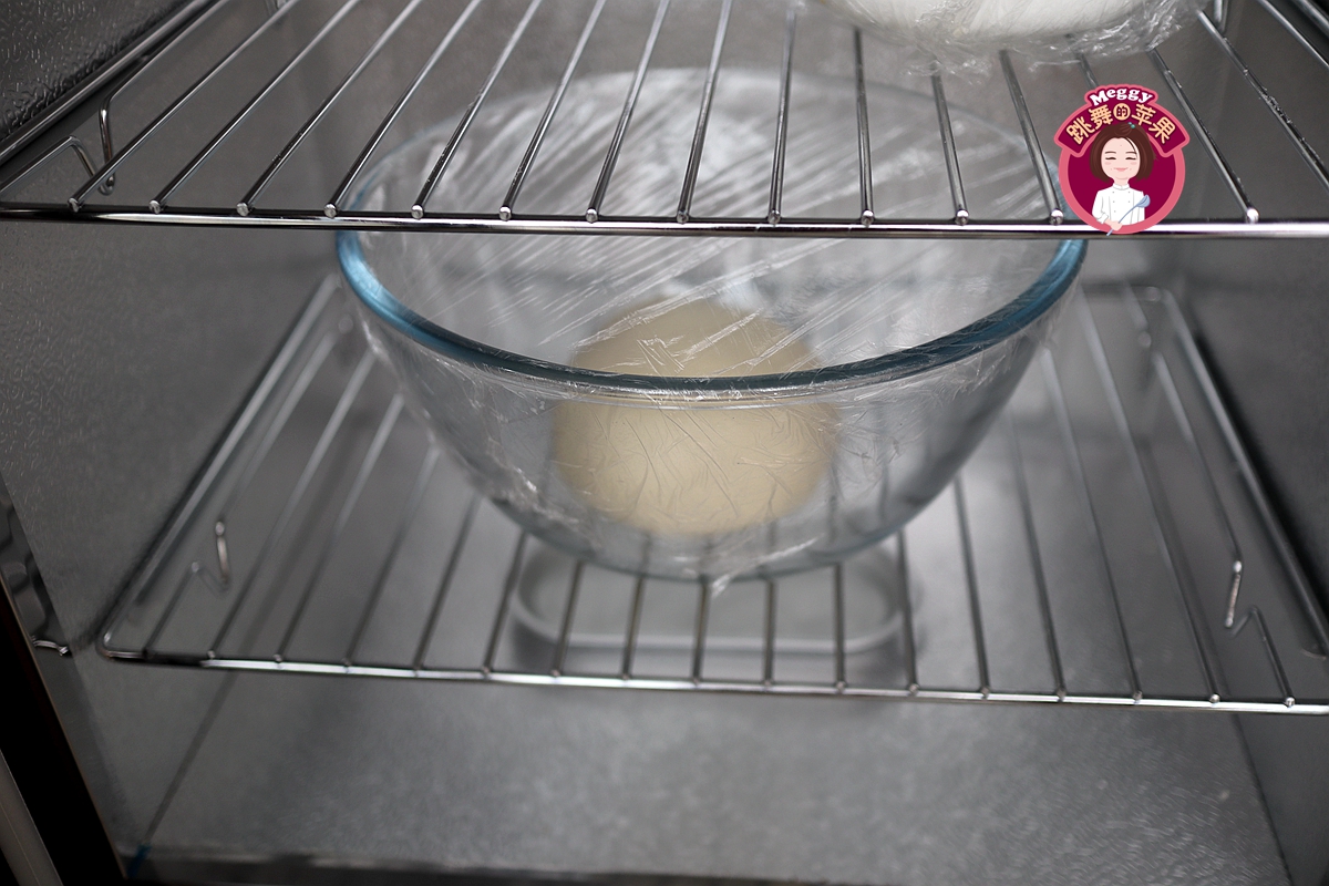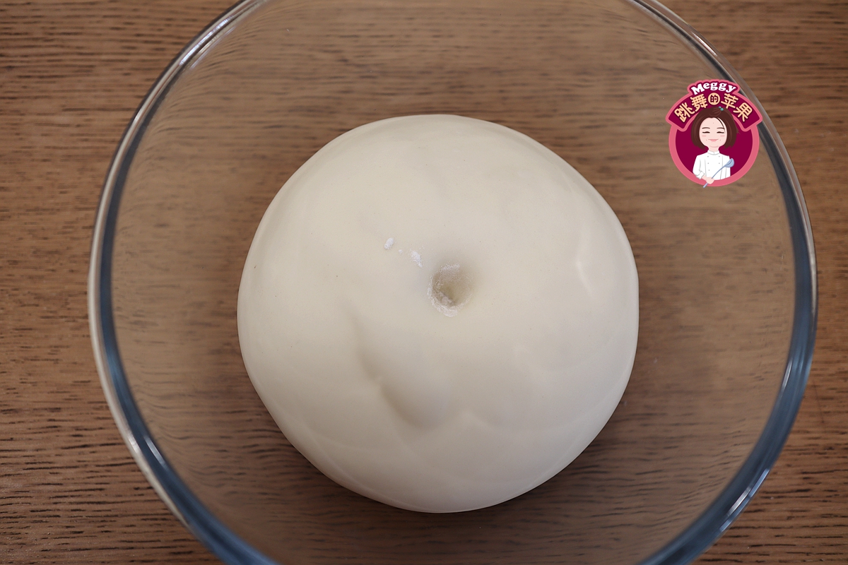 7. 面团是原来的2倍大时,手指蘸面粉在面团顶部戳个洞,不塌陷不回缩,发酵成功;