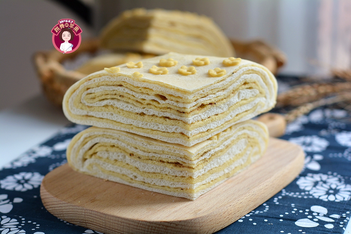 今天我给大家带来的这款千层饼,依然是蒸出来的,层多、柔软、有滋味。折叠方法比“井”字格的更简单,但是层次可多了不少。“井”字格的千层饼是单色的,9层8个夹心,而今天这个是双色的,数一数有12层,看着是不是更过瘾?