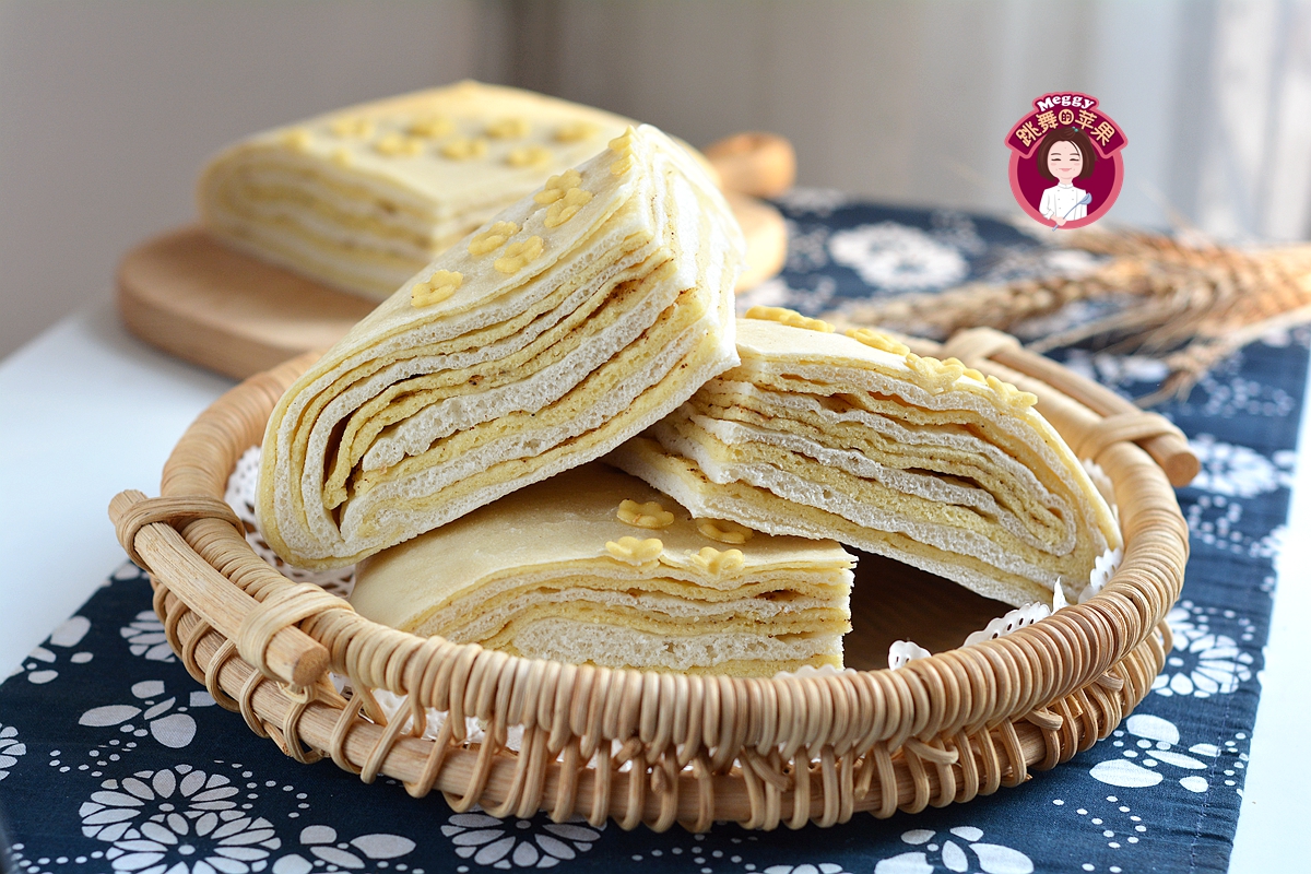 如果按照“井”字格的做法,这个金银千层饼就是18层喽!为嘛叫金银饼?看这面皮一黄——金,一白——银,是不是可以称之为金银?