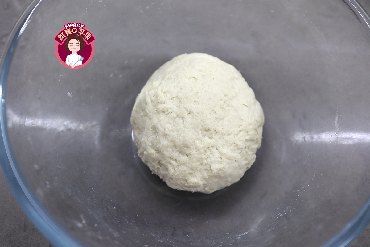 4. 手揉成较滋润的面团,面团不要太软;蒙保鲜膜放温暖湿润处基础发酵;