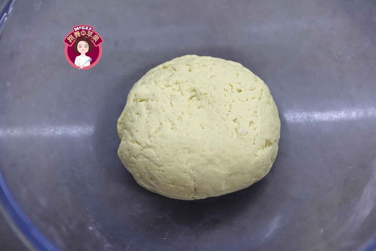 12. 抓两把小麦面粉,将玉米粉面团揉较光滑状态;留一小块乒乓球大的面团做装饰用;