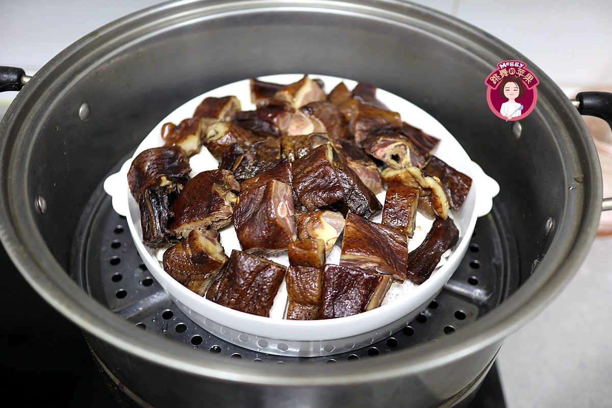 酱鸭蒸芋头的芋头片来几块,因为富含淀粉,既能当菜又能当一部分主食。