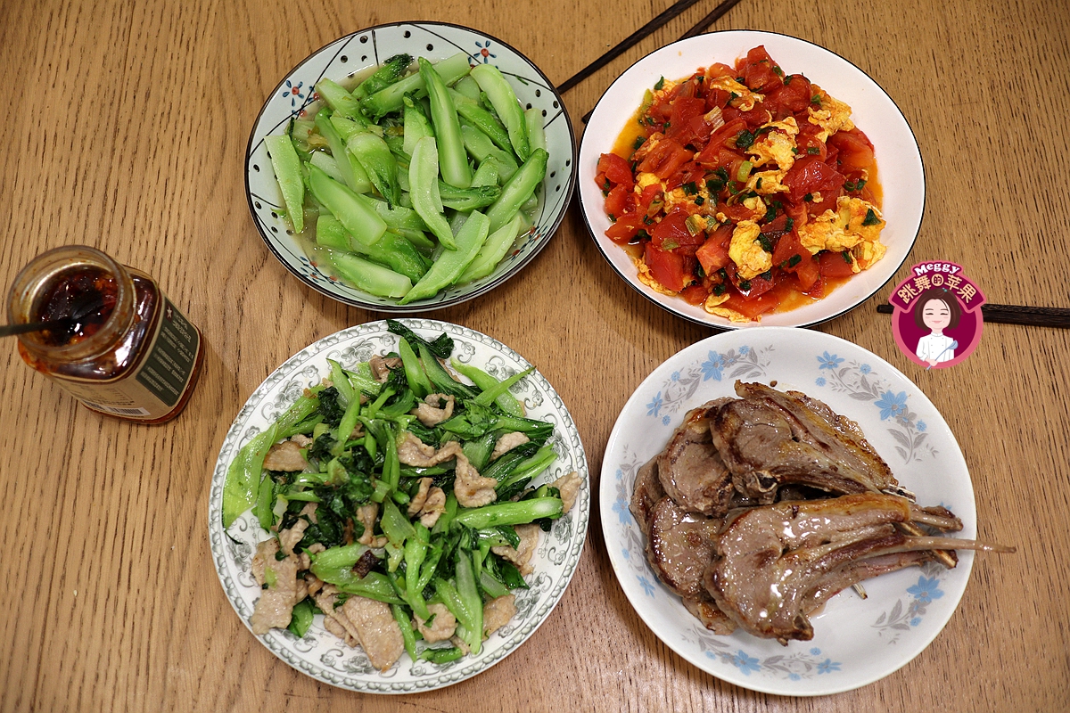 今天出去买菜了,所以饭桌上的绿色多了起来。四菜俩绿,看着真养眼。