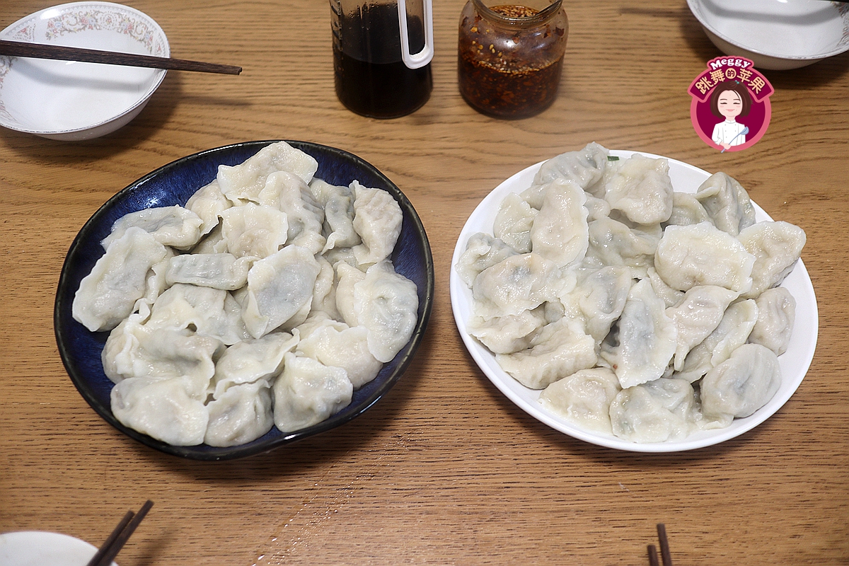 今天的饺子依然是两种馅的,一个是猪肉韭菜的,一个是猪肉春笋胡萝卜的。