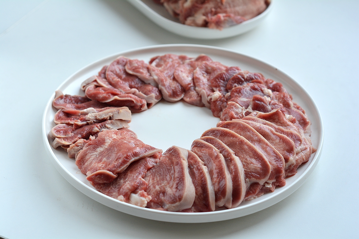 中等粗细的玉米面用热水烫过之后,熟得快,而且软乎不硬。搭配着今天的牛舌是多好的想法呀!
