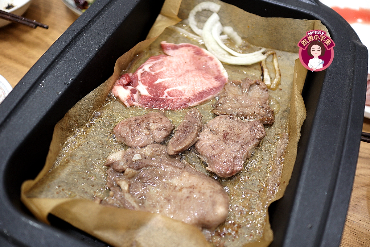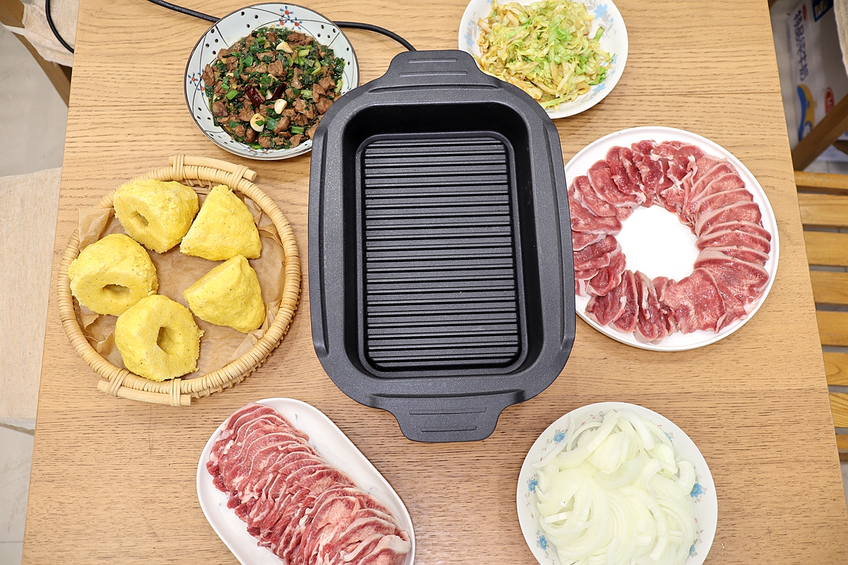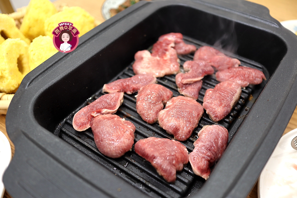 老公说,外面吃烧烤垫上一张油纸,烤盘又干净,肉也有隔层加热,会不会更嫩点儿?那咱就试一试呗!我铺了一张油纸,又淋了点橄榄油,牛舌片确实比先前的嫩了,但因为烤盘是波纹状的,不是完全平面加热,所以牛舌加热的时间长了;嫩是嫩了,又由于橄榄油和一些肉汁不能导流出去,所以牛舌吃起来太油腻了。