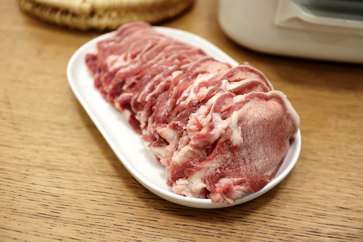 虽然刀功不是很好,但是自我感觉这牛舌切得也还成。尤其是头一次看到生的牛舌头,红白相间,煞着好看。