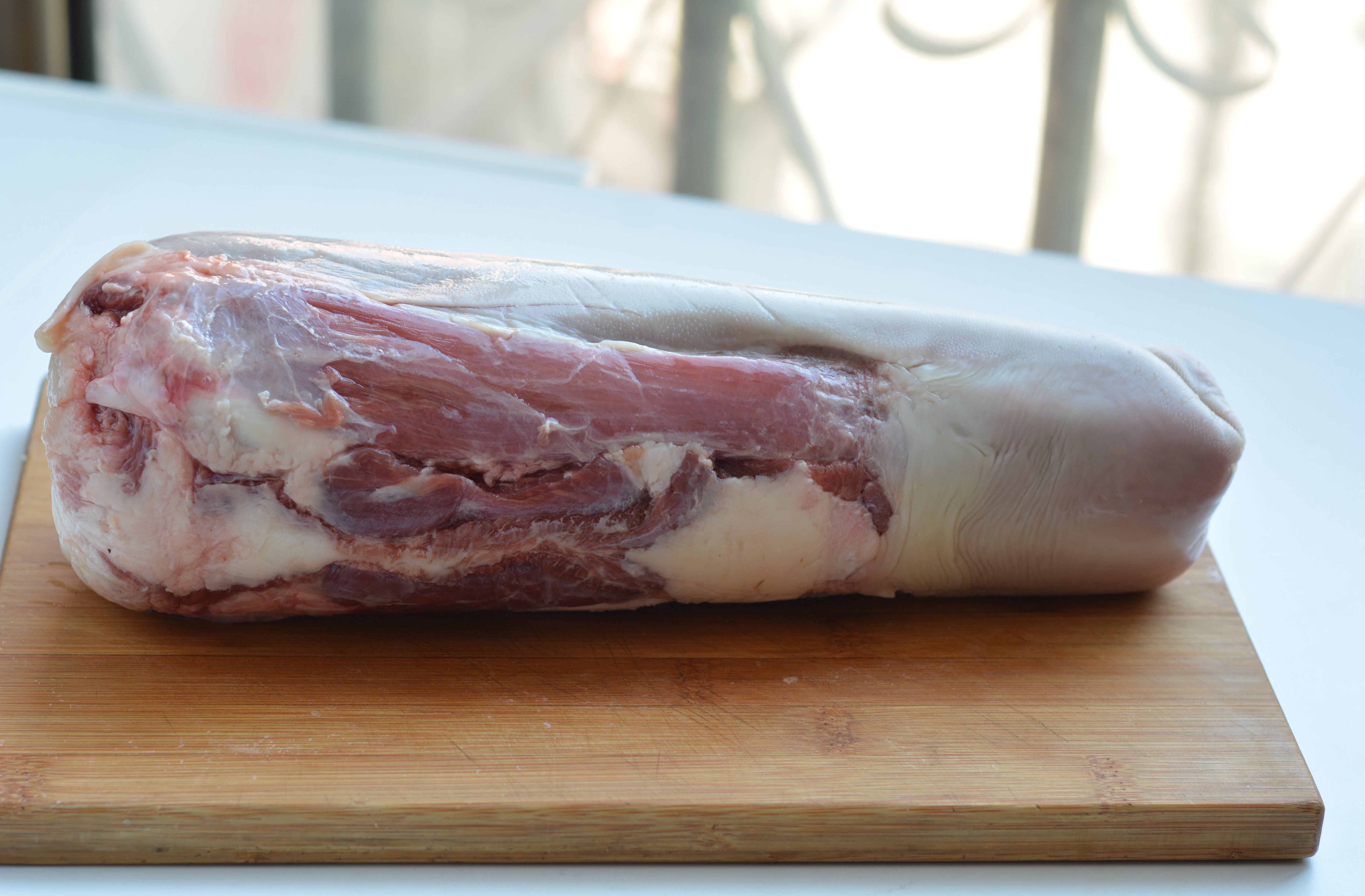 因为没养过牛,也没见过整条的牛舌头,所以我就选了带皮的。带皮的48一斤,去皮的50一斤。我心想着这皮应该不难去,省一点儿是一点儿,顺便也开开眼。