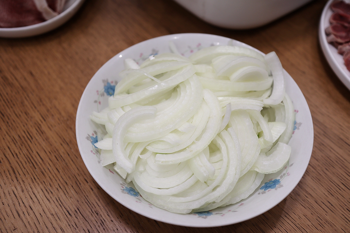 晚餐准备妥当了。这样的晚餐搭配是我设计好的。因为牛舌富含脂肪和蛋白质,3斤多的牛舌吃下肚也不好消化,用素炒圆白菜和窝头可以解腻,增加植物纷纷和膳食纤维;洋葱头可生食,也可与牛舌同烤,增香解腻。