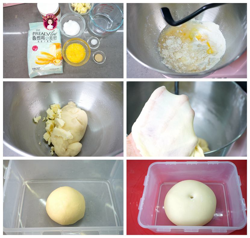 1. 面包材料准备好,材料提前称重,使用起来不手忙脚乱;室温低,用普通的凉水就可以,如果用冰块泡水来揉面,会延缓面团升温的过程,对面团筋度形成会更好;