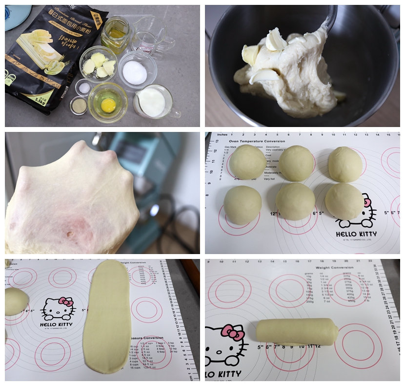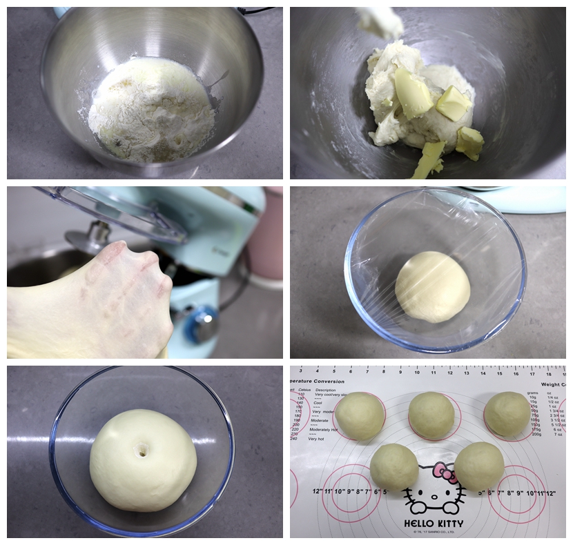 4. 面团称重分成6等份,分别揉圆,盖保鲜膜静置15分钟;