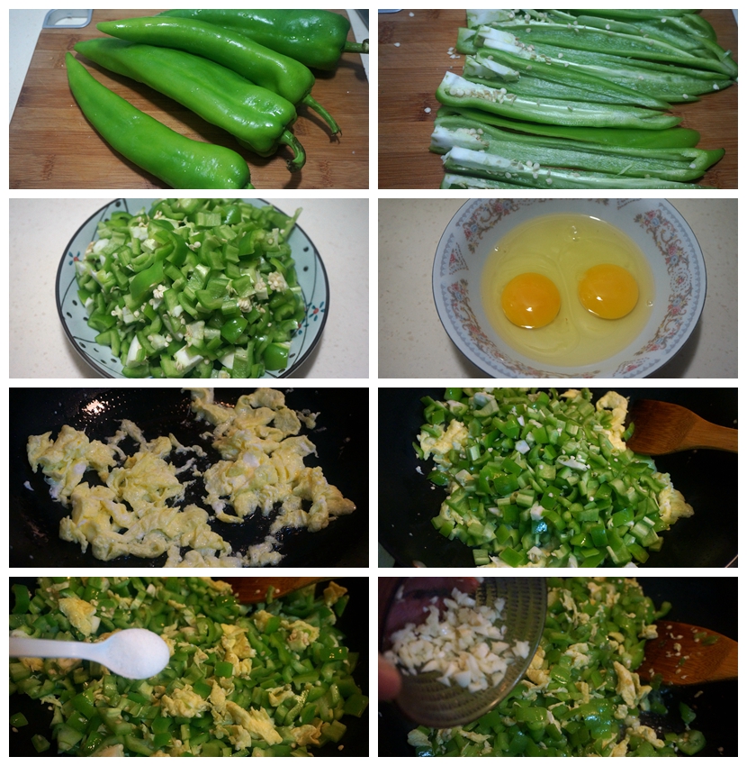 【材料】辣椒4根,鸡蛋2个,盐少许,大蒜4瓣