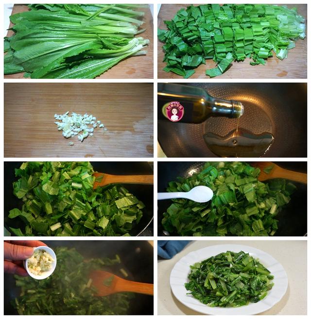 材料:油麦菜1把,大蒜2瓣,橄榄油适量,盐适量