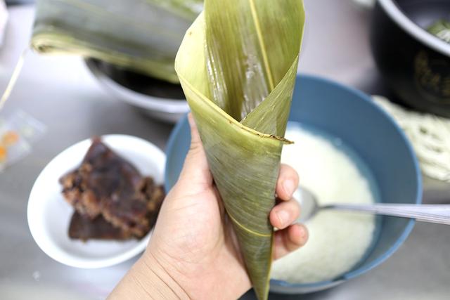 叶子稍微差了点儿,所以我就用好吃的馅料来弥补。北方人喜欢吃甜粽,正好家里有现成的玫瑰豆沙馅,我平时为了补充体力也时常含服鲜参蜜片,每个粽子里面放一片,除了豆沙甜味,还多了蜂蜜和人参的味道。老妈说,这粽子会不会因为这片人参而身价大增啊?哈哈,管它呢,吃进肚子里是真的!