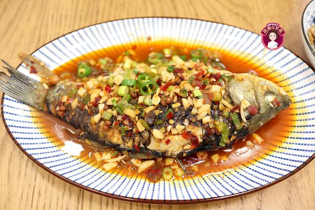 鲫鱼个头不小,差不多有400克左右,很适合干烧。顺着鱼刺的方向挑肉,也不觉得刺多。将鲫鱼两面用油煎金黄盛出,锅中底油将蒜末姜末豆瓣酱炒出香味,倒1碗水,再将鲫鱼入锅中,小火慢炖10分钟,起锅前撒香葱末、辣椒圈,颜色漂亮还入味,鱼汤浇在米饭上,很下饭。
