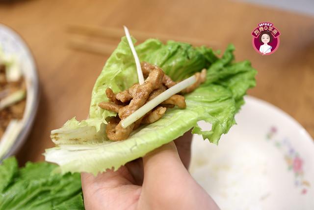 传统的京酱肉丝要裹着豆腐皮吃,但夏天散装的豆腐片易变质,而真空包装的家里又没有,于是我用了罗马生菜来代替。