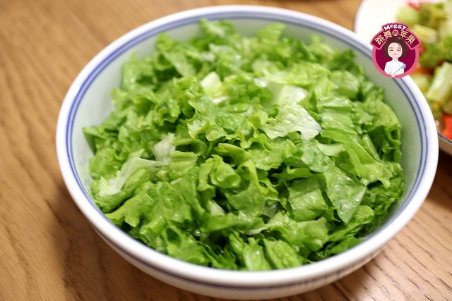 罗马生菜洗净,甩掉叶间的水,切粗丝,放少许盐和果醋,酸酸甜甜,清清爽爽,非常开胃。
