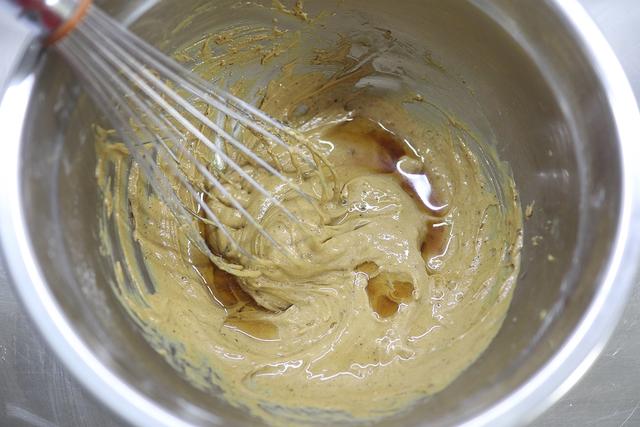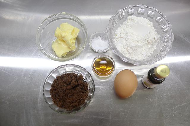 【材料】 黄油60克,红糖46克,低筋面粉75克,泡打粉0.8克,鸡蛋1个,香草精数滴,朗姆酒8ml