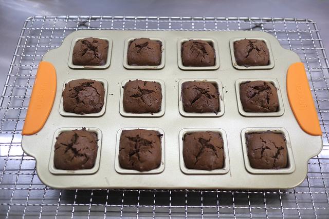 蛋糕糊在混合时直担心消泡而难涨发,但是结果出乎意料,涨发得非常好,个个都似小火山一样鼓起来了。口感扎实,有海绵蛋糕的“风范”,组织很细腻湿润,橙皮丝已经完全融合在蛋糕中,不细找不细吃,还真发现不了,但味道却很明显。