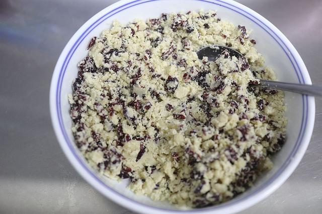 【材料】 冰皮月饼预拌粉300克,85以上热水300克,紫薯粉2克,南瓜粉2克,红甜菜根粉1克,大青麦苗粉1克,绿豆沙适量,(美国Ocean Spray)蔓越莓干适量