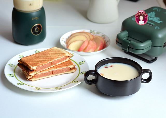 米糊中的杂粮不限于这几种,可以随意搭配;米糊全程需要20分钟,三明治可在米糊快完成时制作。