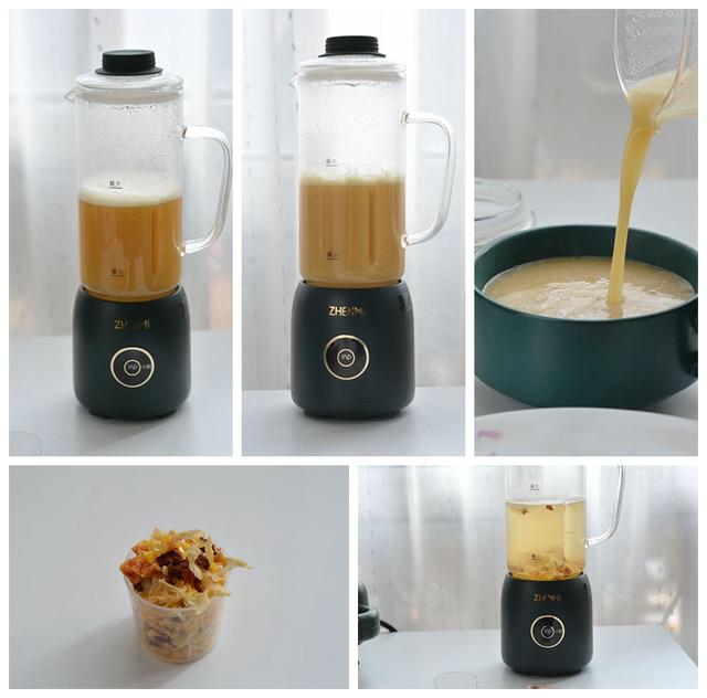 【豆浆】 玉米渣、红薯丁、百合、银耳共1小杯,凉水适量