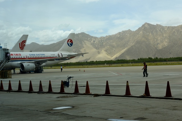 下午四点,飞机降落在拉萨的贡嘎机场。记得有一次去九寨沟时的黄龙机场也属于高海拔(3448米),一下飞机就觉得整个人是晕晕乎乎的,那是典型的高原反应。贡嘎机场位于世界屋脊,海拔达到了3600米,是世界上最高的民用机场。根据来之前诸多西藏老驴们的提醒,一下飞机最好所有的动作放缓,少费力多吸气,呵呵。可能是因为有心理预期,我自己感觉还好,没有太多异样,一下子放心了很多。等行李的时候摄影师小虎提醒我,你现在体内的氧气还够用,等几个小时后体内浓度下降,才能看出来你是不是真没事儿。