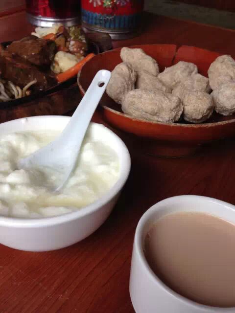 天空中乌云密布,感觉像要下雨的样子。小虎刚才关于高原反应的预言开始应验了,不过中刀的不是我,而是誉妈。看她脸色开始发白,讲话也有气无力,一问果然说头晕。连晚饭也不吃了,要独自回宾馆休息。晚餐是在一家藏式餐厅,味道很好,打包带了一些回宾馆,准备让誉妈也尝尝,但回去后看到早已躺在床上的她,看来今天是肯定没有这个口福了。