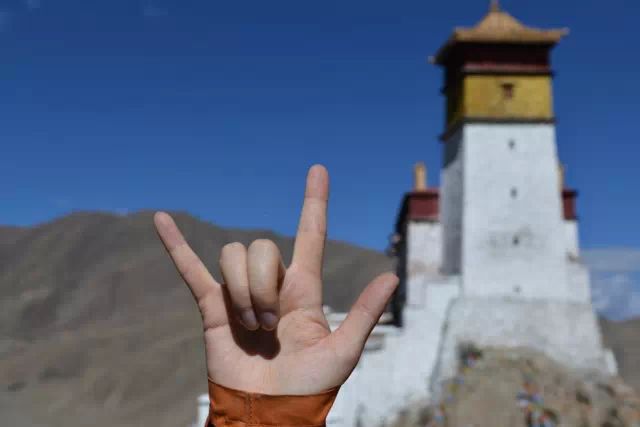 宫殿前,我们竖起了三个手指做起了手势,这正是我们三一联盟的标志。