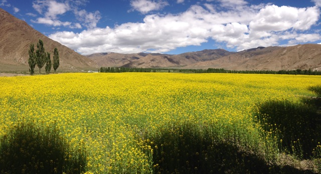 从雍布拉康出来,路过昌珠寺,里面正在大修,于是只在门口看了看,然后循着地图向藏王墓方向开去。藏王墓是各代吐蕃赞普的陵墓群,是西藏保存下来的规模最大的王陵。开往藏王墓的路上经过一大片的油菜花,去年在青海旅行时也见过,西藏这里整片的不算大,但有蓝天和白云做背景,也是美得惊人。
