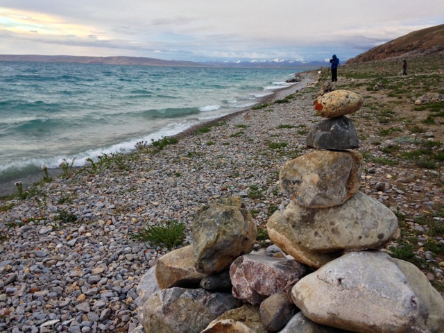 放下行李,我问老板借了一个三脚架,问他这个时点去哪儿拍照就好,他指了指客栈背后的方向,让我们赶紧上山看日落。爬上百米来高的山坡,天色已经渐暗,眺望圣湖,阔如大海。