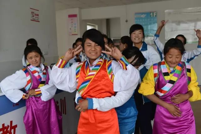 在教学楼前遇到一群盛装打扮的同学们,原来马上就是七一节了,学校组织了一场锅庄舞大赛的活动给党的生日献礼,同学们正在做最后的排练。