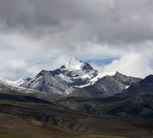 经过一个休息站,前方是一片雪山,其中的一座山峰形态酷似珠穆朗玛,我们开玩笑将它命名为小珠峰。后来回来时我在微信朋友圈贴了一张山峰的照片,让大家猜是什么峰,如果答案五花八门,也有人真正答对是拿多拉山。老高还提供了一个奇思妙想,说可以开发一个攀登小雪山的旅游项目,在路过找一个雪线比较低的山峰,在确保安全的前提下上大家感受一下在雪上行走的乐趣,应该也是一个不错的体验。