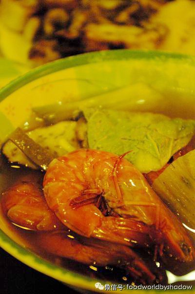 由于菲律宾的地理原因,他们的日常饮食里当然少不了各色海鲜,肉类菜肴也十分常见,唯独蔬菜显得弥足珍贵,然而眼前这道菲律宾名菜SINIGANG却是海鲜、肉类、蔬菜一锅烩的典范。我认为,以它的酸辣口味和出场率,应该可以称为菲律宾的国汤,与泰国的冬阴功汤、印度尼西亚的sayur asam、越南的canh chua等齐名。后来的几天里,在几乎每一个出售菲律宾传统菜肴的餐馆,甚至是豪华购物中心的快餐档中,我都看到了SINIGANG的身影,说它是菲律宾人最喜欢的汤也毫不为过,当地人一般将它作为汤和主菜,配合米饭来吃。据说马来西亚也有一种SINIGANG,但是原料和口味与菲律宾的有所区别,希望有机会去当地尝试一下。