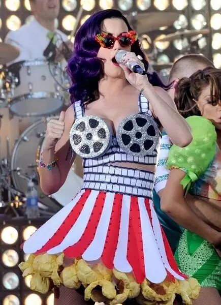 不过Katy Perry除了有实力、名气大,舞台造型也很有特色,她穿过耀眼的西瓜胸衣,演唱会现场也时常让人瞠目结舌。