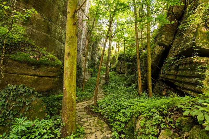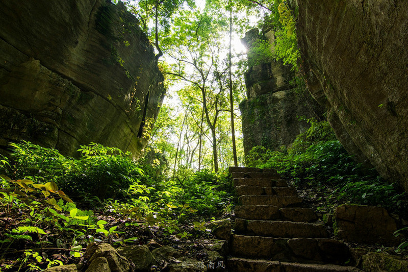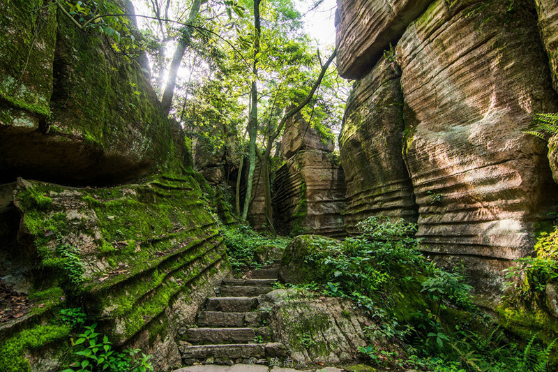 不二门森林公园有一片怪石麇集的石林,排列莫测,狭道交织,忽上忽下,时左时右,登阶钻洞,险趣环生。