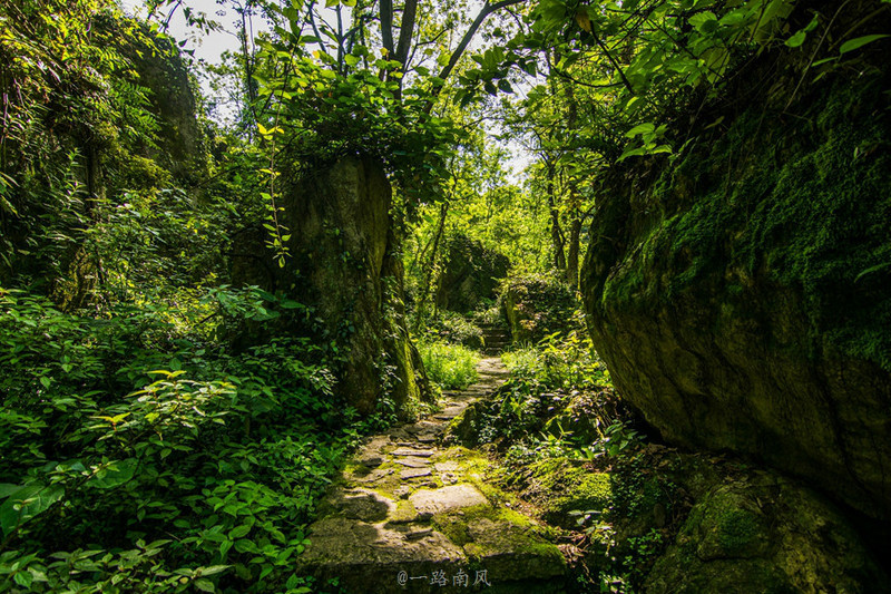 不二门森林公园各种大型喀斯特石块林立,不同的石块拼接成不同的形状。抬头望天,天空时而开阔、时而狭小成一线天。在石头阵中穿行,草木的香气沁人心脾。走累了,小憩闭目养神,但闻空山鸟语,内心进入一个无比纯净的世界。