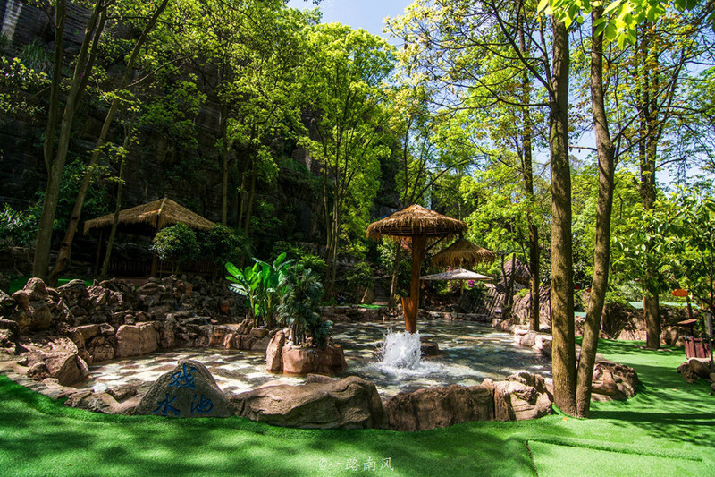 不二门温泉在一片巨石和密林之中,在温泉区可以闻到森林公园的草木清香。泡在池里,一边享受温泉对肌肤的关怀,一边欣赏山林美景。无限惬意!温泉旁的石块上有著名画家黄永玉的题字,沿着阶梯向上,但见半山耸立着一座观音像。