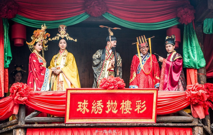 这回绣球抛给现场一位害羞的帅哥,场面欢乐。