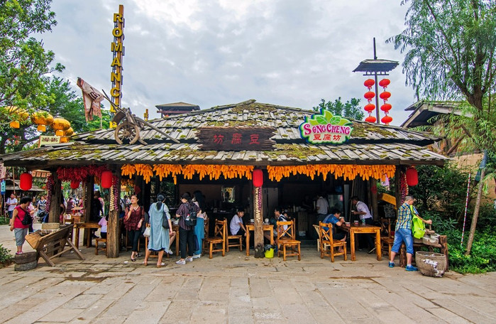 西周风情街按设有打铁铺、豆腐铺等各种商店和作坊。