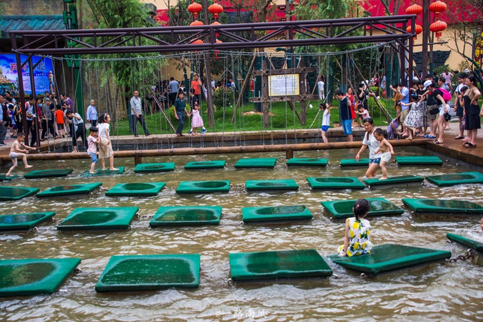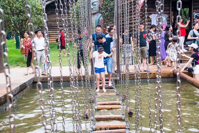 千古情大剧院前的水上运动场成了大小朋友的超级娱乐场。