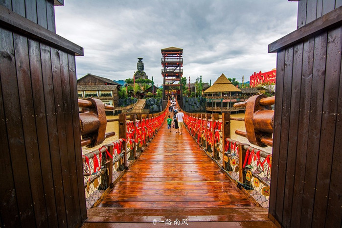 栈道索桥是炭河古城最特别的景观,一桥飞渡,再现西周时期的历史风貌。